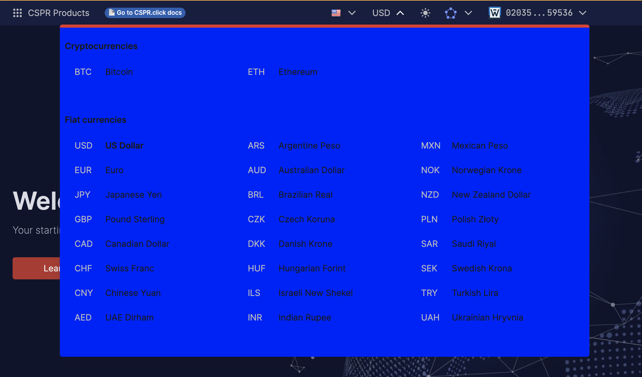 <figure><img src="https://github.com/make-software/casper-click-websdk/blob/documentation-v1.10/docs/public/.gitbook/assets/theme-customization/hover-currencies.png.png" alt=""><figcaption></figcaption></figure>